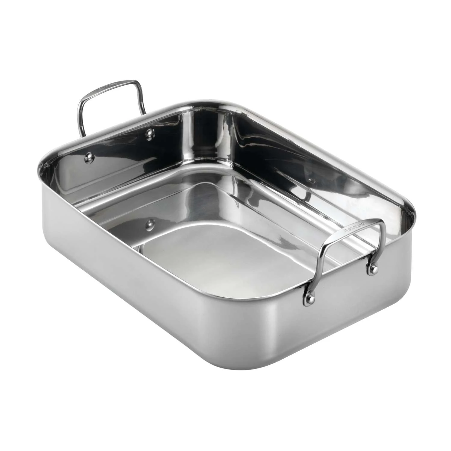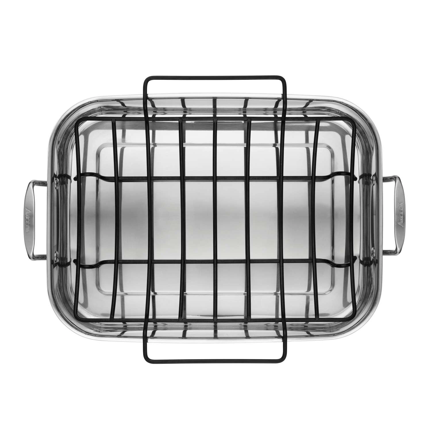 Roast delicious meats for gourmet meals in the Anolon Tri-Ply Clad Stainless Steel 17-Inch by 12-1/2-Inch Large Rectangular Roaster with Nonstick Rack. The roaster’s durable three-ply construction features an aluminum core between layers of stainless steel for excellent, efficient heat distribution all the way up the sides of the roaster and the polished, sophisticated exterior boasts easy-to-clean stainless steel. This large roaster is ideal for roasting an herb-rubbed chicken or for creating a succulent smoky soppressata-wrapped pork roast. The nonstick rack releases roasts effortlessly and also features handles for easy lifting of large cuts from the roaster pan. Comfortable, stylish pan handles are dual riveted for strength and both roaster and rack are dishwasher safe for convenient cleanup. Large rectangular roaster with nonstick rack Durable three-ply construction features an aluminum core between layers of stainless steel for excellent heat distribution The nonstick rack releases roasts effortlessly and also features handles to more easily lift meats out of the roaster pan Polished, sophisticated stainless steel exterior looks great and is easy to clean comfortable stainless steel handles are dual riveted for strength Oven safe to 500 degrees Fahrenheit and dishwasher safe for convenience