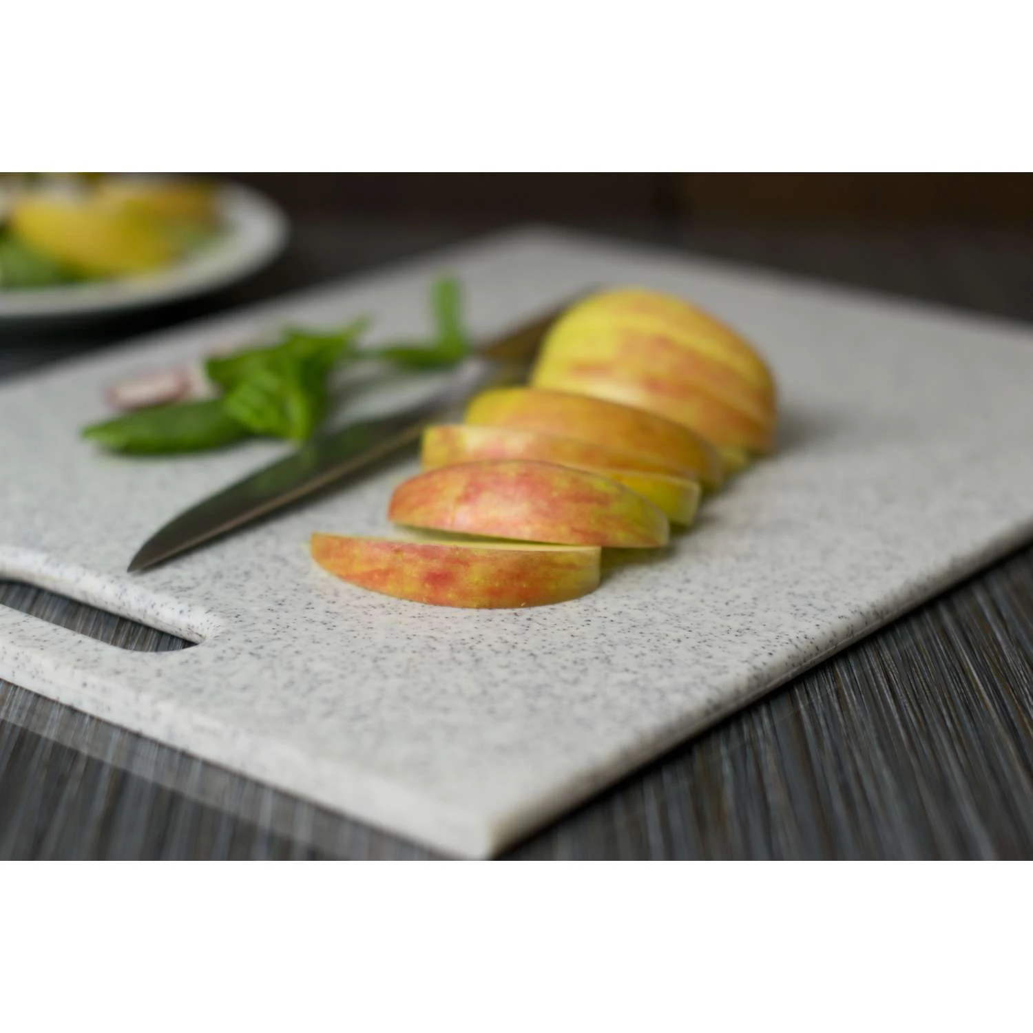 Architec® EcoSmart™ PolyCoco™ Cutting Board is an eco-friendly board made by our certified zero-waste factory in the USA. Features translucent recycled polypropylene with suspended coconut shell showing throughout. If it can’t be eco-friendly enough, we offer an internal recycling program (information on label). Eco-friendly Dishwasher safe BPA free