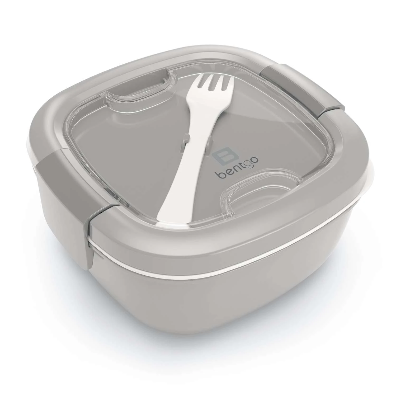 Bentgo Salad makes eating fresh and healthy salads while on-the-go easier than ever. The all-in-one design offers the perfect solution for mess-free transport of your greens, salad toppings and salad dressing so you can enjoy a delicious and nutritious salad at school, work, on a plane, at the park or just about anywhere. Bentgo Salads large salad bowl easily holds up to four cups of greens, pasta or fruit making it the perfect size for even the hungriest appetites. Reusable fork stores conveniently in the top lid Top lid features a rubberized sealing ring and locking clips Compartment tray stores 3 or more toppings Leak-proof 3 oz salad dressing container keeps sauces mess-free during transport