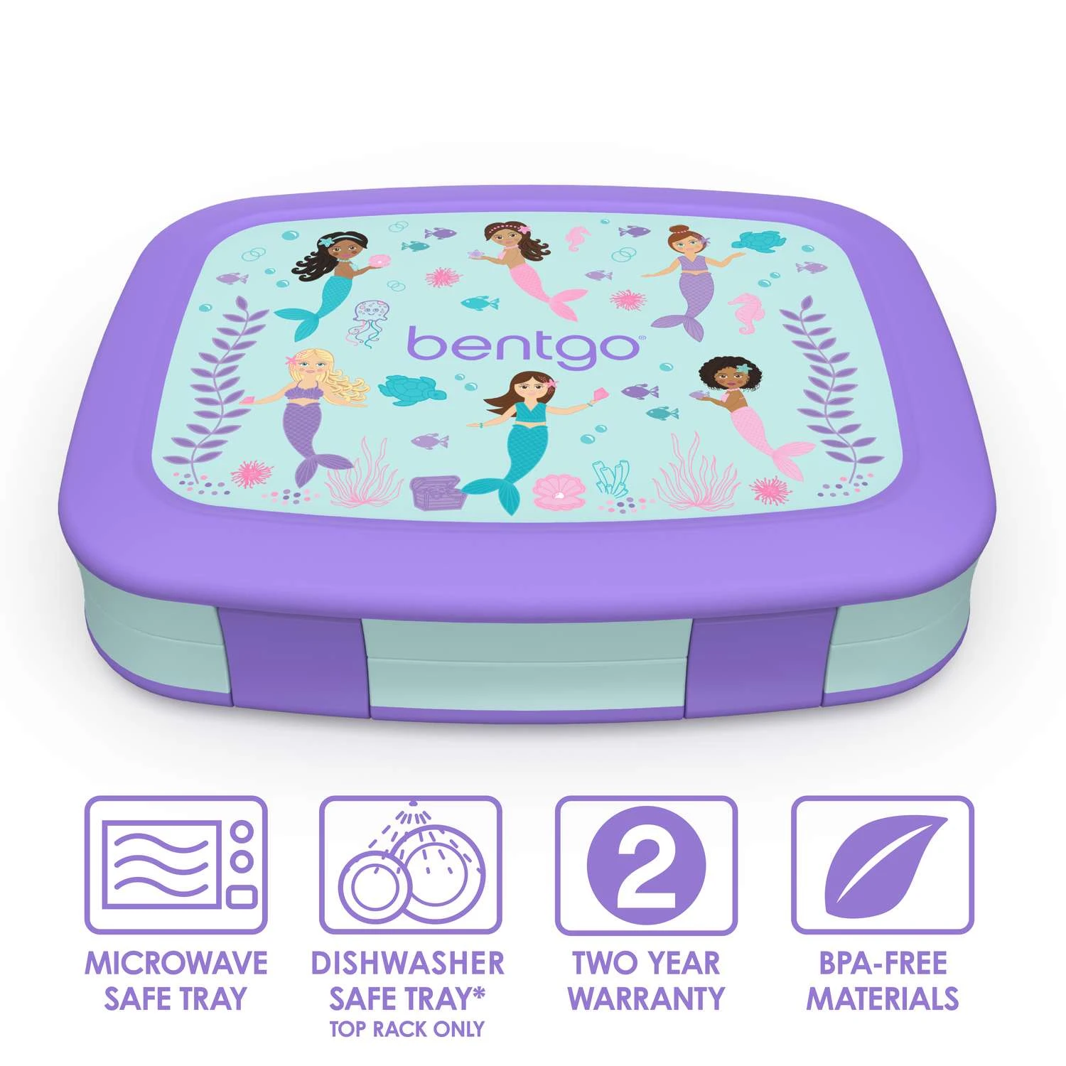 Give your childs lunchbox a fun and stylish makeover with a bold, new pattern from Bentgo Kids. This one-of-a-kind, leak-proof Bentgo Kids lunch box features 5 compartments for fruit, veggies, dip, an entree and dessert. With so many perfectly portioned compartments, this Bentgo box for kids organically inspires parents to pack a more wholesome, balanced lunch for growing kids who are always on the go. This bento lunch box for kids features drop-proof, rubber-coated edges and a sturdy design that is ideal for active kids on the go. It keeps meals and snacks fresh and mess-free during transport and includes 2 kid-friendly latches that are easy for small hands to open and close. Our Bentgo Kids Prints come in 6 adorable designs for the perfect lunch box for girls or boys. Although the Bentgo Kids Prints lunch box is recommended for children ages 3-7, it can be used by teens and adults looking to pack a portion-controlled lunch. The removable tray can be placed in the microwave for up to 3 minutes to reheat food The easy-to-clean compartment tray in our kids lunch box is top-shelf dishwasher safe Bentgo Kids Prints lunch boxes are made of FDA food-grade materials without BPA, vinyl, lead or PVC