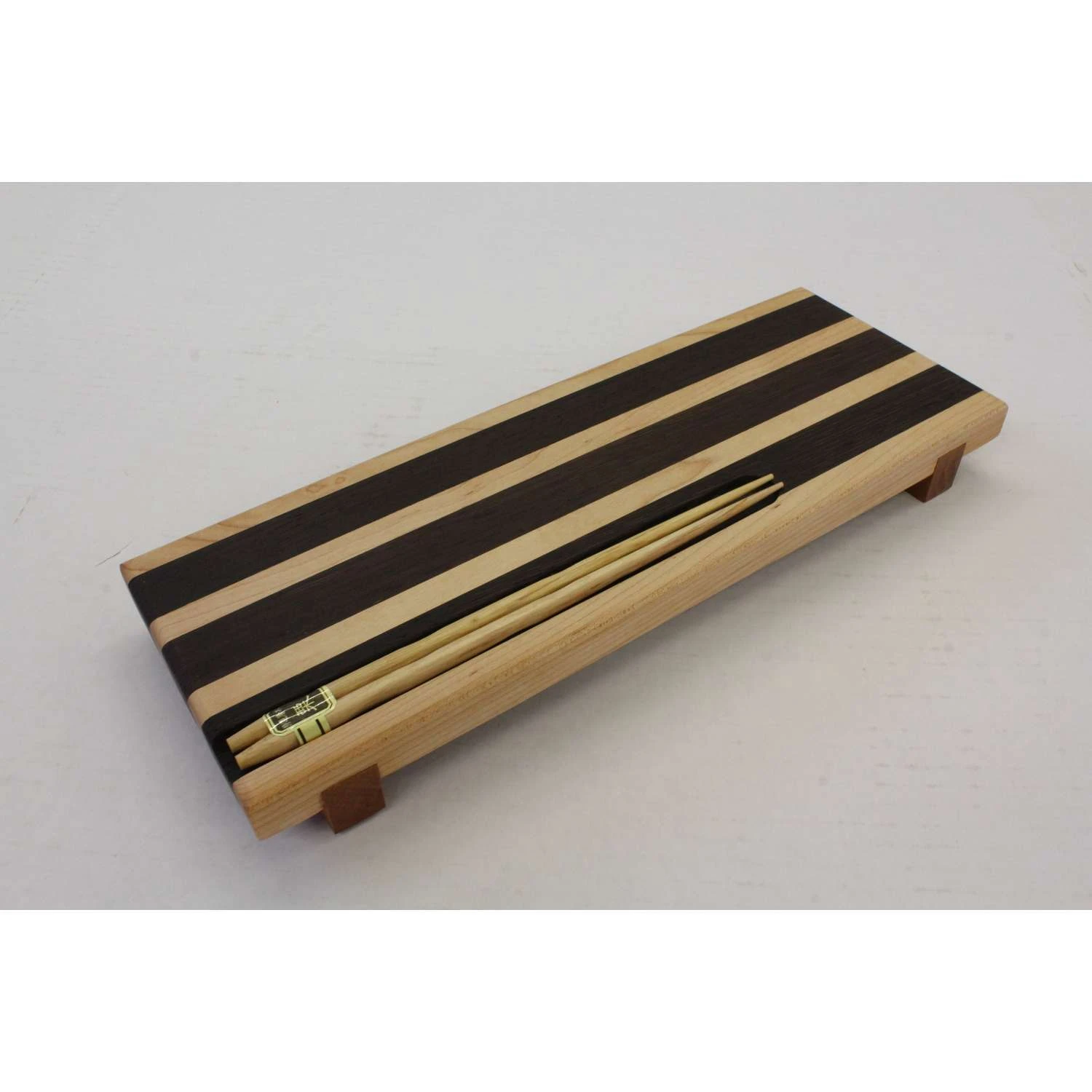 You’ll never eat sushi any other way after you eat it off of our modern style sushi tray. This beautiful, handcrafted sushi tray will be the star of your next sushi dinner. This sushi tray has been intelligently designed with a well that holds your chopsticks and keeps them clean. All trays are individually handcrafted by veterans in North Carolina, no two trays will be the same. We use a blend of different hardwoods to bring out the beauty of every tray. Prepare and serve food on the same board Hand wash and air dry Food safe