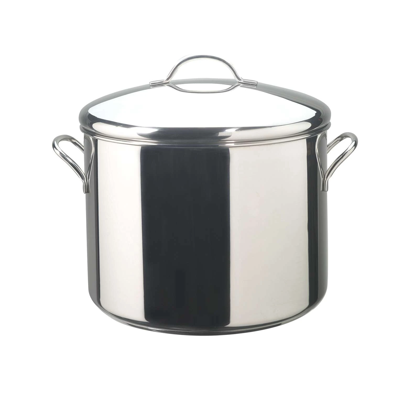 The jumbo Farberware Classic Series Stainless Steel 16-Quart Covered Stockpot has the capacity to easily feed a crowd, no matter the setting or occasion. Farberware has been trusted for over 100 years and this stockpot continues that tradition for a new generation. A full cap base featuring a thick aluminum core surrounded by stainless steel provides rapid, even heating whether making a Louisiana-style shrimp boil or cooking barbequed beans for a family picnic. Heavy-duty stainless steel is polished to a mirror finish for a classic touch and the comfortable handles with iconic styling provide a confident grasp. This giant stockpot not only works great for simmering an extra-large batch of chili, it can also help with canning during the summer months. 16-quart covered stockpot A full cap base on the stockpot features a thick aluminum core surrounded by stainless steel for rapid, even heating The stockpot’s heavy-duty stainless steel is polished to a mirror finish for a classic touch the self-basting lid helps seal in heat and moisture Oven safe to 350 degrees Fahrenheit, the sturdy stainless steel handles provide a confident grasp This dishwasher-safe stockpot combines technology with the styling and quality that Farberware has delivered for decades