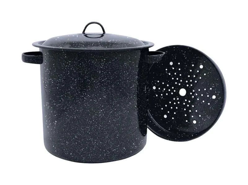 The Granite Ware 15.5-qt Tamale pot with Lid features a steel core for strength. It has porcelain fused to the steel, producing a non-porous, inert glass surface that’s easy to clean. This Granite Ware 15.5-qt Stock Pot is naturally nonstick and distributes heat evenly for convenient, easy cooking. Its innovative construction adds no chemicals to the food, so it preserves the natural taste, color and nutritional value. Continue a tradition passed down through the generations with our Granite Ware 15.5 qt Tamale Pot. Not recommended for glass stove tops. Durability and functionality Large capacity for making tamales in bulk for the whole family This Granite Wear pot is handy for tamales, veggies, soups, stews, seafood and much more so you are able to make enough to feed a large group or make extra to stock your freezer