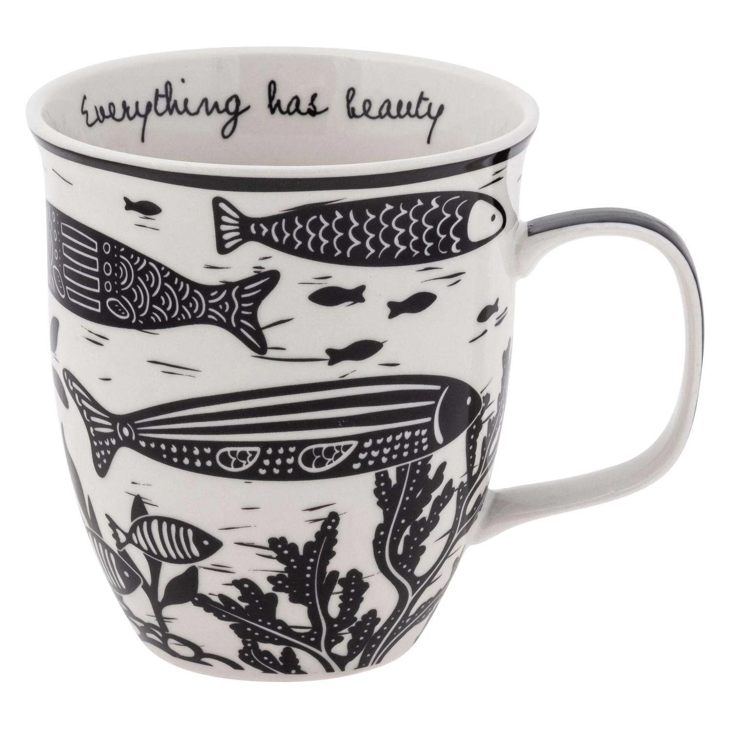 Karma Gifts Boho Black/White Ceramic Fish Mug 3.7 In. D 1 Pk