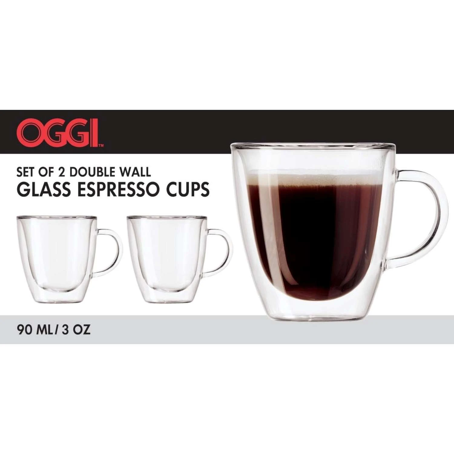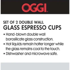 OGGI Brew Clear Borosilicate Glass Double Wall Cup 2 Pc