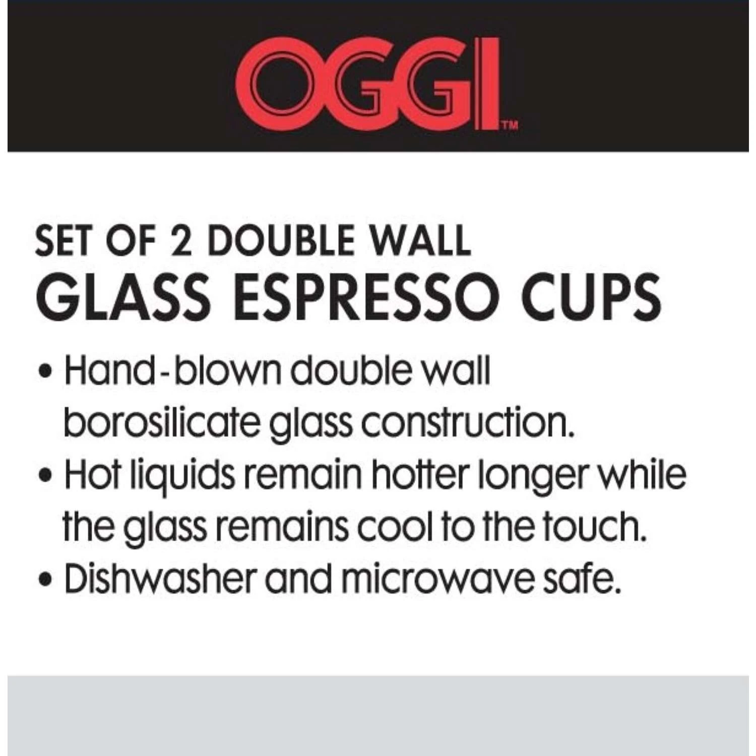 Oggi’s borosilicate glass cups suspend your hot beverages within an inner crystal clear glass wall for an engaging optical effect. The double wall construction of this heavy duty glass allows for high heat retention properties with a cool-to-the-touch exterior. A beautiful way to enjoy a hot beverage longer or showcase your barista crafting. Handle for easy carrying, microwave safe Cool to the touch, condensation free Double wall construction delivers thermal properties
